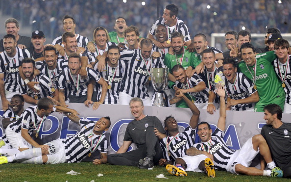 ROME, ITALY – AUGUST 18: Juventus FC celebrate with the Supercup trophy after the TIM Supercup match between SS Lazio and FC Juventus at Olimpico Stadium on August 18, 2013 in Rome, Italy. (Photo by Claudio Villa/Getty Images)